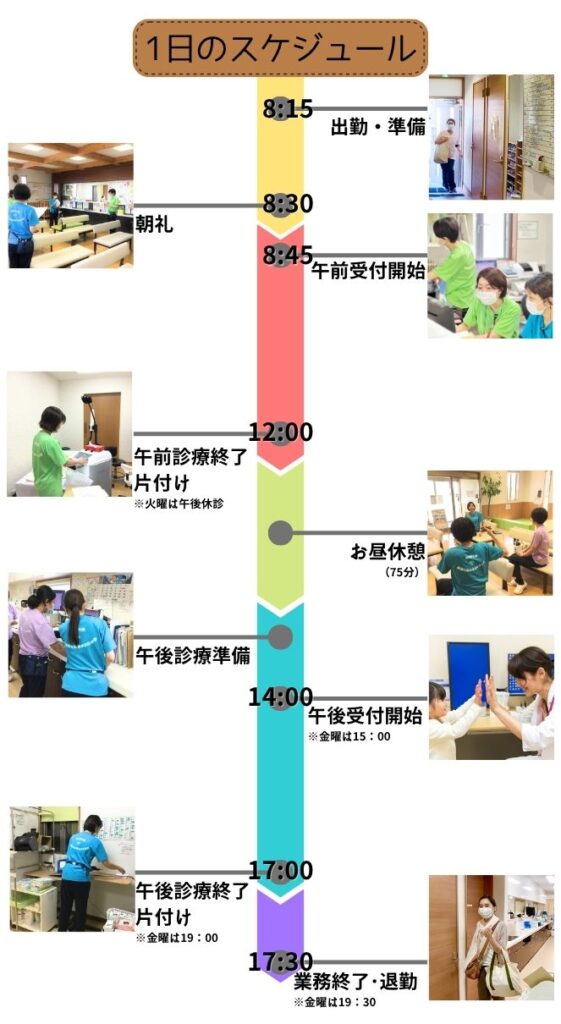 仕事内容主な業務採血、生理検査(心電図、レントゲン介助など)、注射、点滴などを中心とした処置診療介助、問診、予防接種、療養指導、インスリン指導などその他の業務院内処方のため、調剤についても勉強ができますスケジュール 当院の理念に賛同いただける方、少しでもご興味のある方は、まずはお気軽に本サイトより直接エントリーしてみてください。募集要項をみる エントリーする